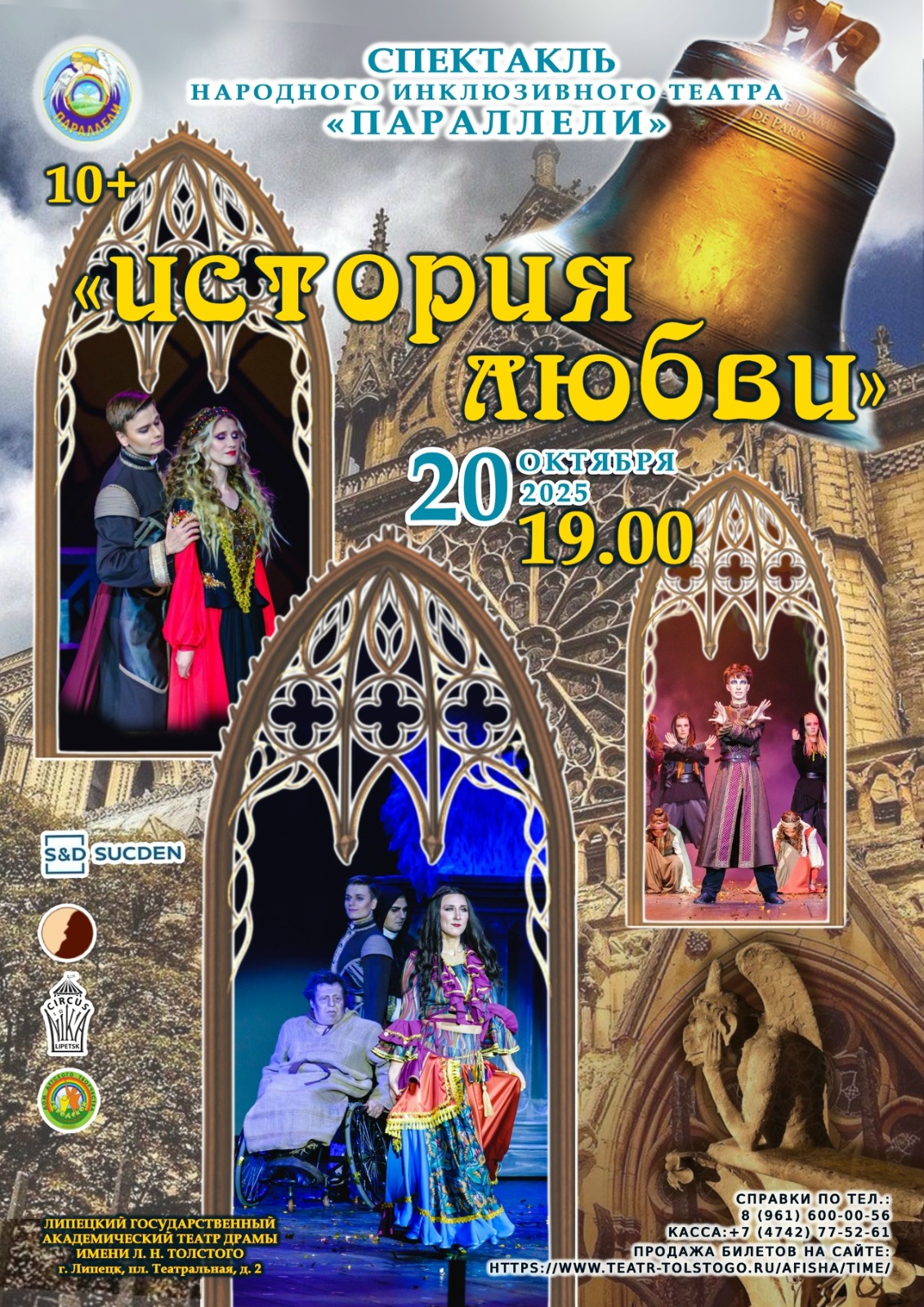 Инклюзивный музыкальный пластический спектакль «История любви» с переводом на русский жестовый язык подготовлен по мотивам мюзикла Нотр-Дам де Пари (русская версия) и романа Виктора Гюго «Собор Парижской Богоматери». В спектакле артисты театра «Параллели» развивают темы любви, равенства, красоты, предательства, человеческих пороков и затрагивают вопросы социального неравенства.