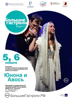 "Юнона и Авось" Донецкий театр 12+Рок-опера в 1-м действии «Юнона и Авось» – А. Рыбникова, А. Вознесенского Донецкого государственного академического музыкально-драматического театра имени М. М. Бровуна в постановке заслуженного деятеля искусств Украины Василия Маслия