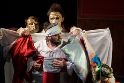 В гостинице Мирандолины артисты бродячей труппы разбрелись по всем комнатам, везде их весёлые голоса, шутки, улыбки, костюмы галантного века! Стихия яркого флорентийского карнавала преобразила всю гостиничную жизнь. И понеслось! Общее ощущение предпраздничной суеты и восхитительной фривольности захватила жизнь наших героев. Мирандолина радостно, без раздумий включилась в общую атмосферу! Всё закрутилось в динамичном вихре игры. Причудливые маски украшают лица людей. Порой, кажется, что маски скрывают не только лица, но и души. «Приличьем стиснутые маски» могут обмануть не только наши чувства, но и чувства других. Как бы, маски нас не подвели.
