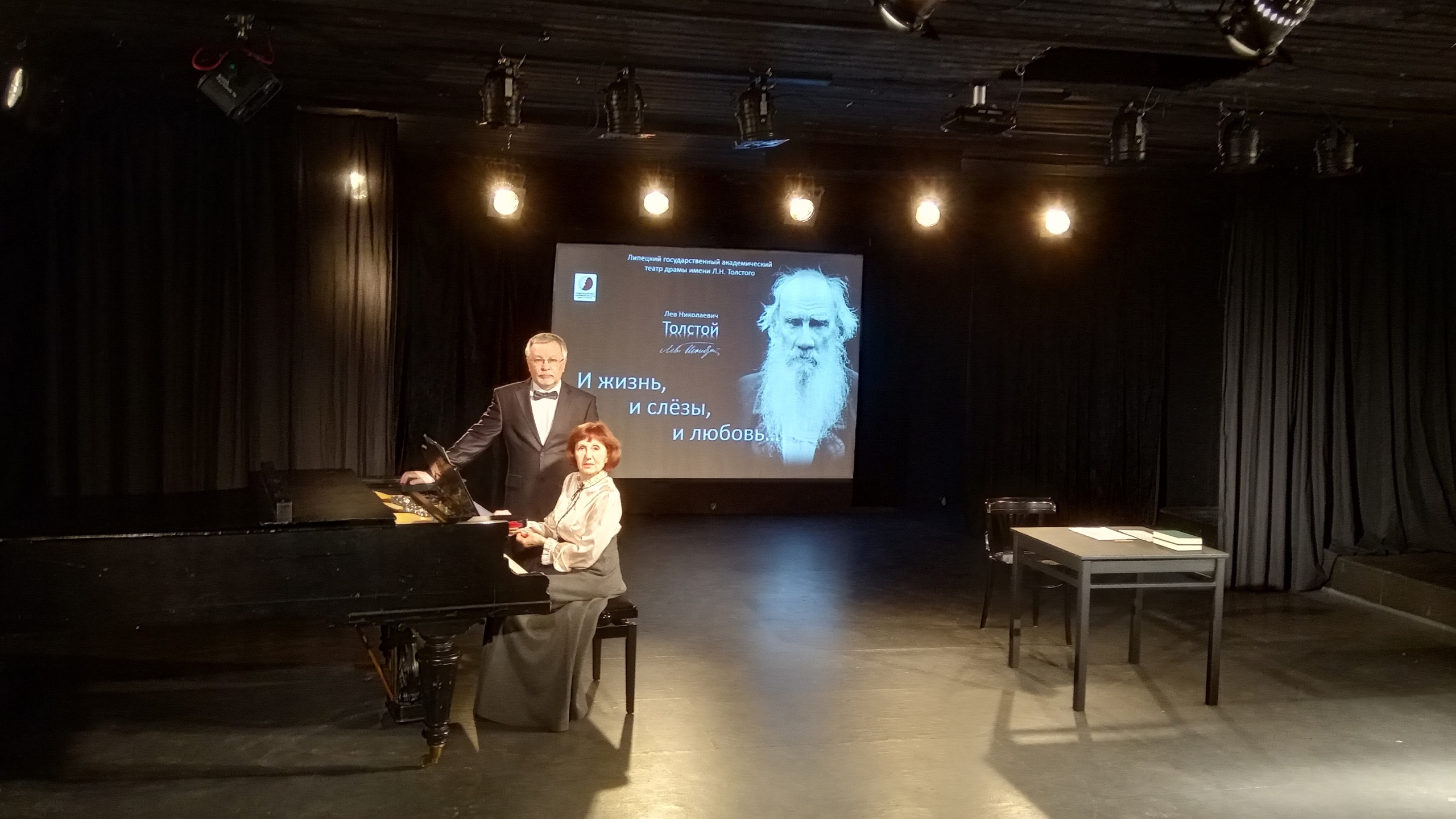 В этот день, в 15-00 артисты пригласят театралов в Липецкую областную научную библиотеку на литературно-музыкальный спектакль «И жизнь, и слёзы, и любовь…», посвященный Л.Н. Толстому. Композицию, исполнят сами авторы инсценировки – заслуженные артисты России Любовь Кабанова и Николай Чебыкин. По их словам, выбор спектакля для показа неслучаен: на этой неделе ( 9 сентября), весь литературный мир отмечает День рождения классика русской литературы, имя которого носит театр. «В спектакле прозвучат интересные факты из жизни Толстого, многие из которых широкой публике неизвестны, отрывки из дневников жены писателя Софьи Андреевны и вальс, написанный самим классиком, - прокомментировал Любовь Кабанова. –К тому же, 11 сентября совпадет с еще одной очень важной для меня датой: 50-летие моей сценической деятельности в Липецком театре. И, если кто-либо из зрителей после просмотра спектакля захочет взять в библиотеке книгу Л.Н. Толстого и прочесть ее, то для меня это будет лучшим комплиментом моему творчеству. Так, что ждем любителей русской литературы и театрального искусства на этот вечер. Вход, кстати, свободный»