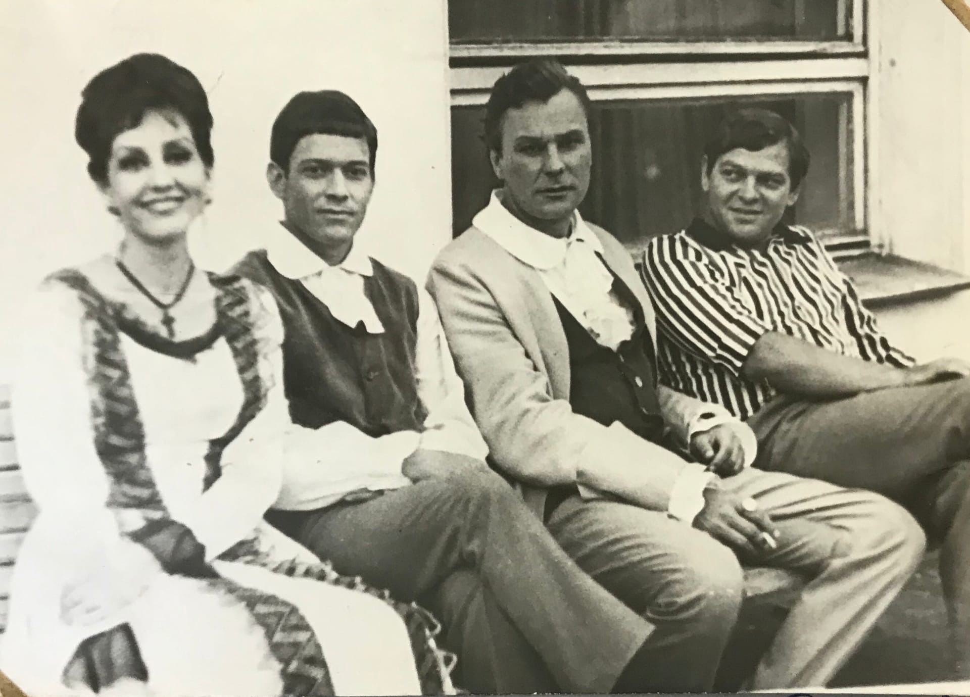 На фото: после спектакля "Брак по конкурсу", Гольдони (артисты Любовь Кабанова, Сивохин, П.Тямушев, главный режиссер А.Т.Найденов)