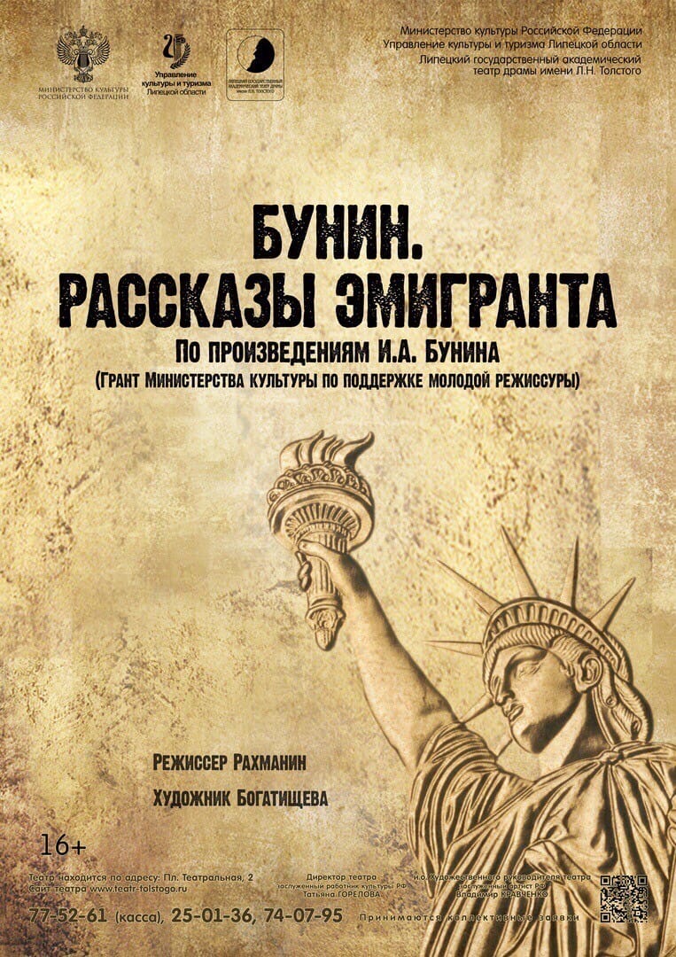 Театр драмы им. Толстого представил для размешения в социальных сетях, в группе проекта, видеозапись эскиза спектакля «Бунин. Рассказы эмигранта». Исполнители главных ролей в видеоинтервью прокомментировали свою работу над спектаклем, рассказали, в какой атмосфере он создавался. Спектакль «Бунин. Рассказы эмигранта» - редкое, откровенное общение с Иваном Алексеевичем, без реверансов и придыханий. Честная попытка молодых актёров и режиссёра найти в бунинской прозе ответы на многие вопросы, и в том числе, на один из самых важных: что переживает человек, покинувший родину? Спектакль появился в репертуаре театра в прошлом году. Актриса Анастасия Абаева, исполнительница роли Руси в спектакле «Бунин. Рассказы эмигранта»: «Было такое ощущение, что мы не спектакль создаём, а рисуем акварелью» Актёр Владимир Юрьев, исполнитель роли Влюблённого в спектакле «Бунин. Рассказы эмигранта»: «Каждый раз я испытываю от этого спектакля колоссальное удовольствие»